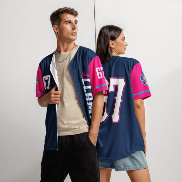Show your Lucky Llamas pride in this classic baseball jersey. Made from recycled, moisture-wicking fabric, it’s lightweight, breathable, and built to keep you comfortable from first pitch to the final Boom.